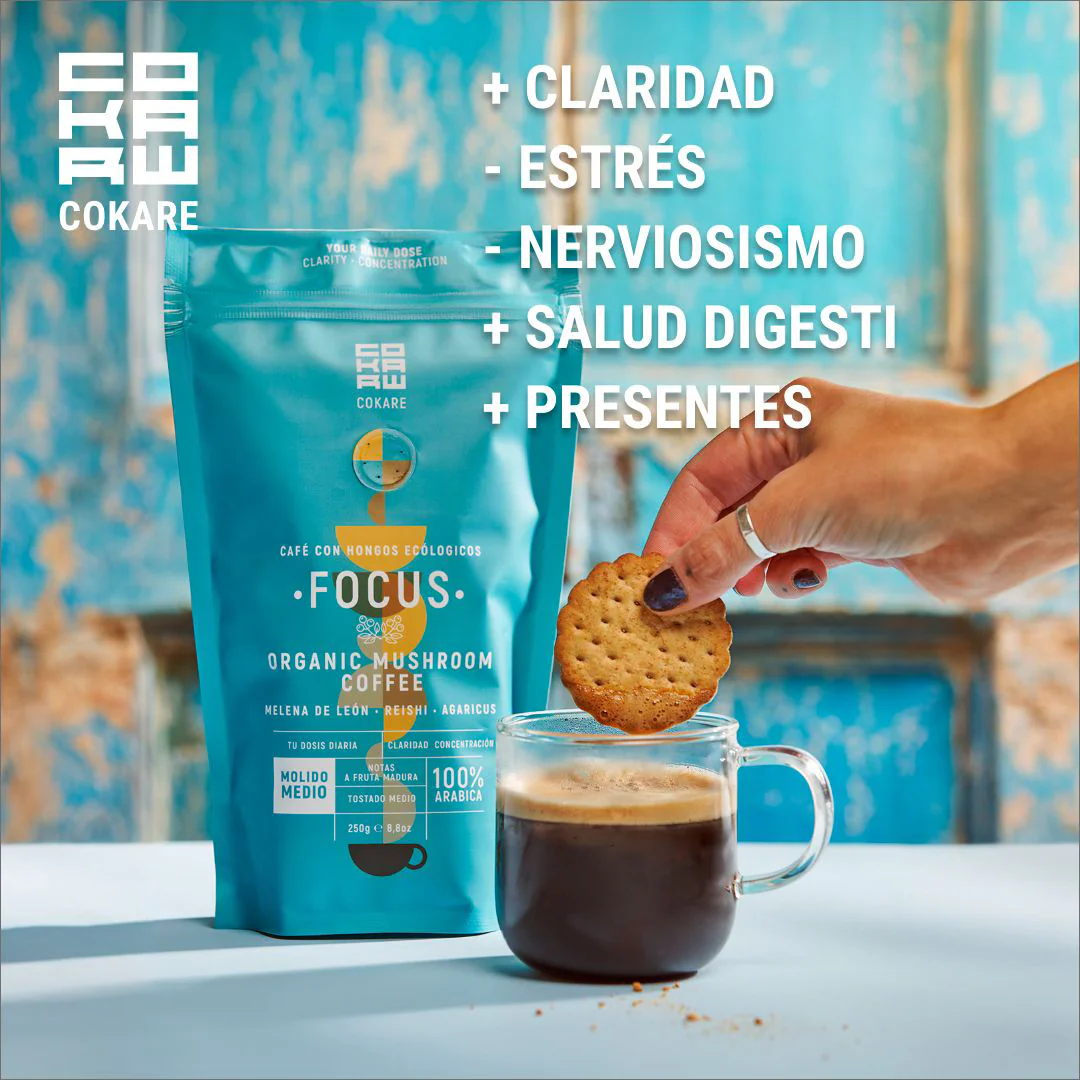 - 3 cucharadas de café en grano aportan 500 mg de mezcla de extracto de hongos adaptógenos