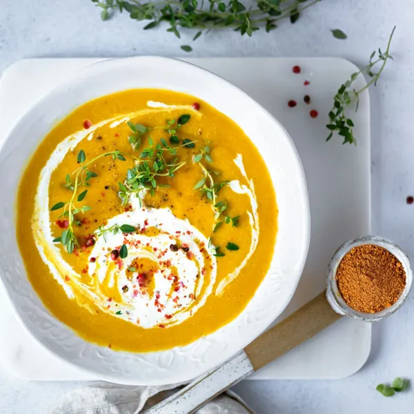 - Triturar, incorporar el perejil y el cilantro picado y la cucharadita de elixir Balance Cokare ,mezclar bien y servir con una cucharada de kéfir si se desea, pimienta rosa y hojas frescas de orégano